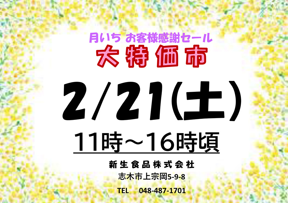 月いち恒例「お客様感謝セール」を2月も開催いたします。